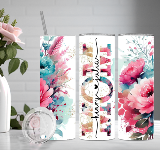 Floral Mom 20oz tumbler. Includes lid and straw.